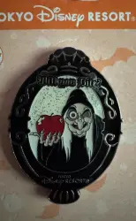 Old Hag with Apple - Will You Bite? is an Open Edition pin from the Halloween pin series. It was originally released on , 2012 and was available from Tokyo Disneyland Resort .