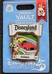 Autopia is a Limited Edition (LE) 4000 pin from the Disneyland Vault Collection pin series. It was originally released on , 2025 and was available from Disneyland Resort .