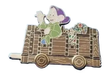 Dopey in Mine Cart is a Limited Edition (LE) 300 pin from the Seven Dwarfs Mine Train Grand Opening pin series. It was originally released on , 2014 and was available from Walt Disney Imagineering .