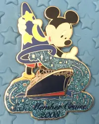 Mickey w/ sorcerer hat S.S. Member cruise 2008 pin is a Limited Edition (LE) 1200 pin from the Disney Cruise Line pin series. It was available from Disney Cruise Line .