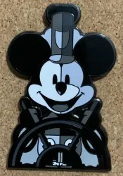 Steamboat Willie at Ship's Wheel is a pin. It is an Unlicensed (Fantasy) pin, so therefore it is not allowed to be traded in the Disney Parks.