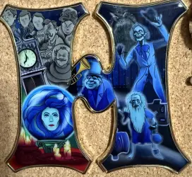 Pin features Madame Leota , Hitchhiking Ghosts and The Hatbox Ghost