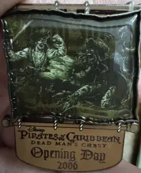 Opening Day Pin Featuring Captain Jack Sparrow and Davy Jones - Dangle is a Limited Edition (LE) 3000 pin from the Disney's Pirates of the Caribbean: Dead Man's Chest pin series. It was originally released on , 2006 and was available from Walt Disney World .