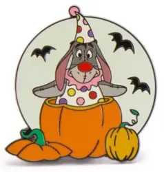 Costumed Winnie the Pooh & Friends Halloween Pumpkin Set — Eeyore as Clown ONLY is an Open Edition pin in the Costumed Winnie the Pooh & Friends Halloween Pumpkin Set — Full Set 4-pin set. It was originally released on , 2025 and was available from Multiple Sources (WDW, DLR, etc.).