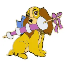 Lady and the Tramp - Lady Umbrella is a Limited Edition (LE) 200 pin from the Pink A La Mode (PALM) Exclusives pin series. It was originally released on , 2025 and was available from an Officially Licensed Disney trading pin vendor (see description for more information).