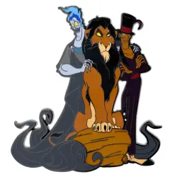 Hades, Scar and Dr. Facilier Jumbo is a Limited Edition (LE) 150 pin from the Pink A La Mode (PALM) Exclusives pin series. It was originally released on , 2025 and was available from an Officially Licensed Disney trading pin vendor (see description for more information).