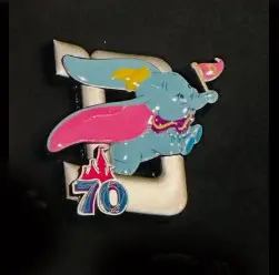 Dumbo is a Limited Edition (LE) 110 pin from the Magic Measures 2024 Disneyland 70th Anniversary pin series. It was originally released on , 2025 and was available from Disneyland Resort .