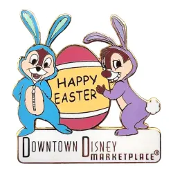 Chip & Dale in Easter Bunny Costumes: Downtown Disney is a Limited Edition (LE) 1500 pin from the Easter 2002 pin series. It was originally released on , 2002 and was available from Walt Disney World .