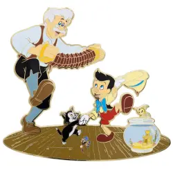 Pinocchio Joy in the Workshop Jumbo is a Limited Edition (LE) 150 pin from the Pink A La Mode (PALM) Exclusives pin series. It was originally released on , 2025 and was available from an Officially Licensed Disney trading pin vendor (see description for more information).