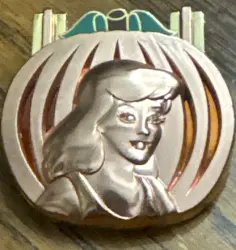 Cinderella in Hinged Pumpkin is a Limited Edition (LE) 1000 pin from the Magical Manifestations Bi-Monthly Series pin series. It was originally released on , 2013 and was available from Walt Disney World .