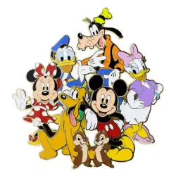 Pin features Chip and Dale , Daisy Duck , Donald Duck , Goofy , Mickey Mouse , Minnie Mouse and Pluto