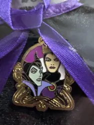 Pin features Maleficent and The Evil Queen