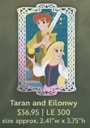 Taran and Eilonwy is a Limited Edition (LE) 300 pin from the The Black Cauldron pin series. It was originally released on , 2025 and was available from Walt Disney Imagineering .