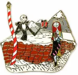 Pin features Jack Skellington and Sally from The Nightmare Before Christmas