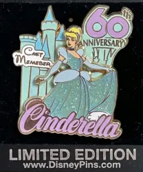 Cinderella (Error) is a Limited Edition (LE) 1500 pin from the Cinderella 60th Anniversary pin series. It was originally released on , 2009 and was available from Theme Park Cast Member Exclusive .