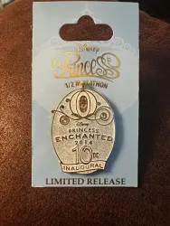 Cinderella carriage princess enchanted 10 K inaugural pin is a Limited Release pin from the runDisney: Princess Half-Marathon Weekend pin series. It was originally released 2014 and was available from Walt Disney World .