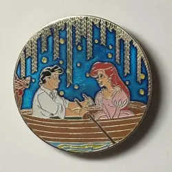 Ariel and Eric in boat on Lagoon is a Limited Edition (LE) 100 pin from the Fantasy Pin Series pin series. It is an Unlicensed (Fantasy) pin, so therefore it is not allowed to be traded in the Disney Parks.