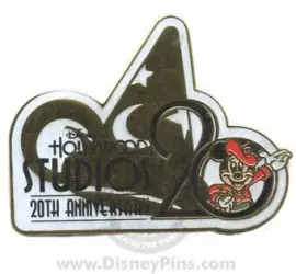 Hollywood Studios 20th Anniversary Golden Sorcerer Hat is a Limited Edition (LE) 1500 pin from the Hollywood Studios 20th Anniversary pin series. It was originally released on , 2009 and was available from Walt Disney World .
