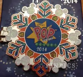 Disney's Pop Century Resort — Mickey Mouse is a Limited Edition (LE) 1000 pin from the Resort Holiday Collection 2014: Hinged Snowflakes pin series. It was originally released on , 2014 and was available from Walt Disney World .