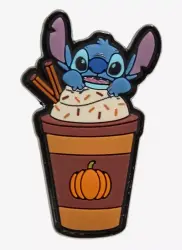Stitch Pumpkin Spice Latte Scented is an Open Edition pin from the Hot Topic - Lilo & Stitch pin series. It was originally released on , 2025 and was available from Loungefly .