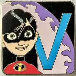 V is for Violet is a Limited Release pin from the Disney Pixar Alphabet - Mystery Collection pin series. It was originally released on , 2016 and was available from Multiple Sources (WDW, DLR, etc.).