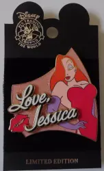 Love, Jessica is a Limited Edition (LE) 2000 pin. It was originally released on , 2002 and was available from Disneyland Resort .