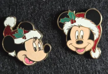 View all 2 pins from the set Mickey and Minnie Mouse Glitter Santa Hats 2 Piece Set