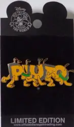 Pluto Name/Letters is a Limited Edition (LE) 750 pin from the Character Name Parts Series pin series. It was originally released on , 2003 and was available from Disneyland Resort .