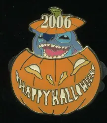 Stitch Inside Pumpkin Slider is a Limited Edition (LE) 500 pin from the Halloween 2006 pin series. It was originally released on , 2005 and was available from Disney Employee Center .