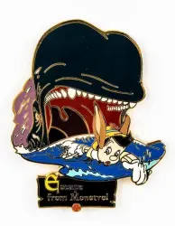 Pinocchio Monstro Escape is a Limited Edition (LE) 100 pin from the Pinocchio Villain Collection pin series. It was originally released on , 2001 and was available from Disney Auctions .