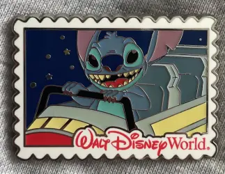 Stitch on Space Mountain is an Open Edition pin from the Deluxe Starter Set - Walt Disney World Postcards pin series. It was originally released on , 2012 and was available from Walt Disney World .