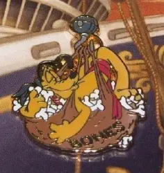 Pluto with sack of Bones is a Limited Edition (LE) 75 pin from the Pirates of Castaway Cay pin series. It was originally released on , 2000 and was available from Disney Cruise Line .