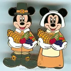 Mickey & Minnie Mouse Pilgrims is an Open Edition pin from the Thanksgiving pin series. It was originally released on , 2005 and was available from Walt Disney World .
