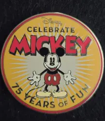 Disney Celebrate Mickey 75 Years of Fun is an Open Edition pin from the Mickey Mouse 75th Anniversary pin series. It was originally released on , 2003