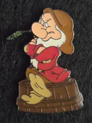 Grumpy Sitting on a Washtub Wheat in Mouth is an Open Edition pin from the ProPin - Snow White pin series. It was originally released on , 2001