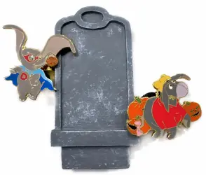 Dumbo as a Superhero and Eeyore as Pooh is a Limited Edition (LE) 1000 2-pin set from the Disney Direct - Tombstone Series pin series. It was originally released on , 2005 and was available from Disney Store US .