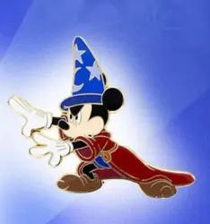 Pin features Mickey Mouse and Sorcerer Mickey from Fantasia