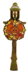 Mickey Jack-o-lantern Pumpkin Wreath - Lamppost is an Open Edition pin from the Fantasy Pin Series: grumpymeatballstudio pin series. It was originally released on , 2025 and is an Unlicensed (Fantasy) pin, so therefore it is not allowed to be traded in the Disney Parks.