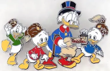 Pin features Scrooge McDuck , Dewey , Huey and Louie
