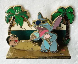 Lilo and Stitch at the Beach - Diorama is a Limited Edition (LE) 500 pin from the 3D Diorama Collection pin series. It was originally released on , 2006 and was available from Disney Store US .