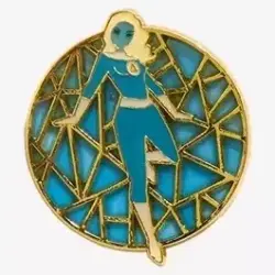 Invisible Woman is an Open Edition pin from the Boxlunch - The Fantastic Four: First Steps Stained Glass Blind Box pin series. It was originally released on , 2025 and was available from Loungefly .