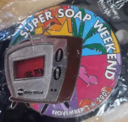 November 3-4, 2001 — Vintage Television Spinner is a Limited Edition (LE) 2500 pin from the ABC Super Soap Weekend pin series. It was originally released on , 2001 and was available from Walt Disney World .