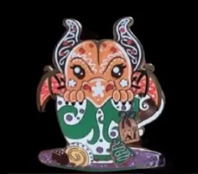 Maleficent Dragon is a pin from the Da Vinci Gingerbread Teacups pin series. It is an Unlicensed (Fantasy) pin, so therefore it is not allowed to be traded in the Disney Parks.