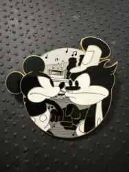 Steamboat Willie and Pete is a Limited Edition (LE) 75 pin from the Dueling Duos pin series. It is an Unlicensed (Fantasy) pin, so therefore it is not allowed to be traded in the Disney Parks.