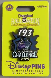 Chills & Thrills Challenge - "I Did It" - Pain & Panic is a pin from the runDisney: Disneyland Halloween Half Marathon Weekend 2025 pin series. It was originally released on , 2025 and was available from Disneyland Resort .