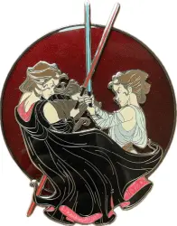 Rey Skywalker vs Sith Rey Skywalker is a Limited Edition (LE) 75 pin from the RedSunflowerPins - Fantasies pin series. It is an Unlicensed (Fantasy) pin, so therefore it is not allowed to be traded in the Disney Parks.