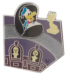 Donald is a Limited Edition (LE) 475 pin from the Attraction Mystery Map Puzzles: Haunted Mansion (DLR) pin series. It was originally released on , 2025 and was available from Disneyland Resort .