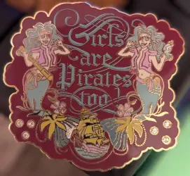 Girls Are Pirates Too! is an Open Edition pin from the Pirates of the Caribbean - Girls are Pirates Too- pin series. It was available from Multiple Sources (WDW, DLR, etc.).