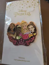 Pin features Aurora , Belle , Tiana and Pocahontas