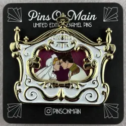 Cinderella and Prince Charming in wedding carriage is a Limited Edition (LE) pin from the Fantasy Pin Series: Pins by Pins on Main pin series. It was originally released in November, 2023 and is an Unlicensed (Fantasy) pin, so therefore it is not allowed to be traded in the Disney Parks.